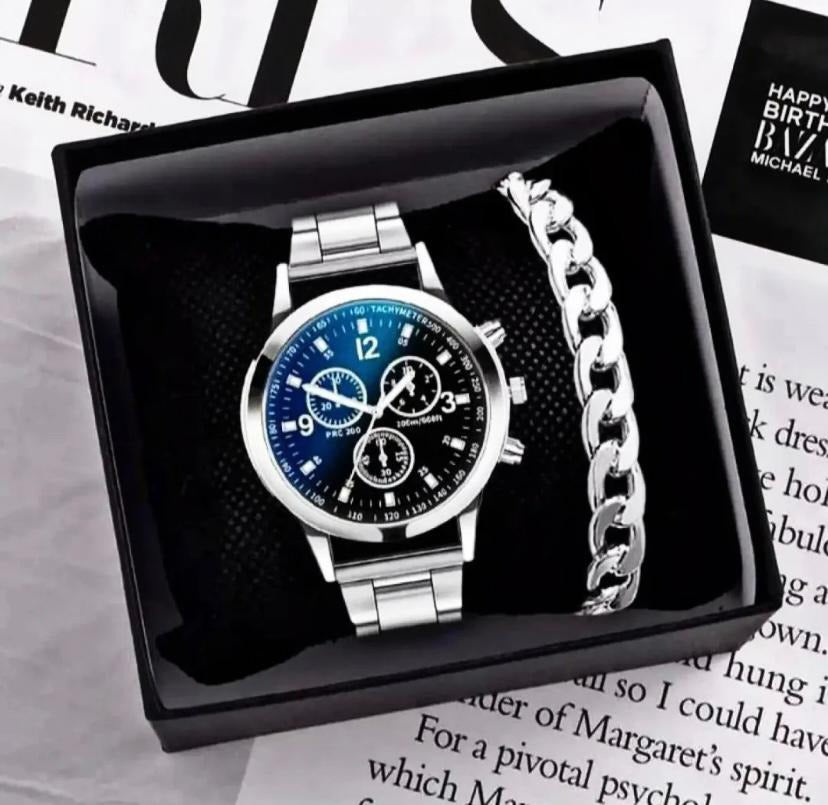 AlRashid Shopping Store Luxury Business Sport Watch for Men / Boys With Silver Hand/Wrist Bracelet Chain