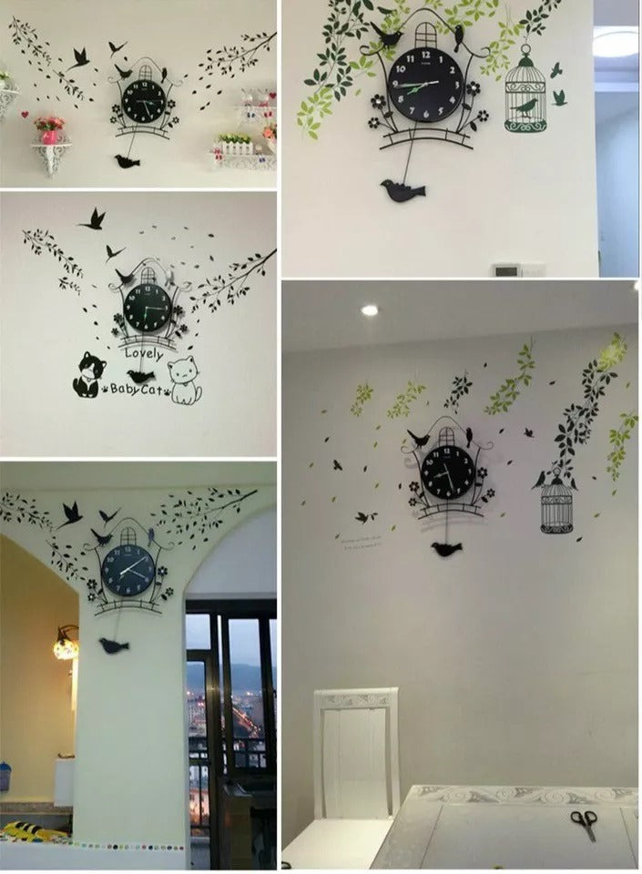 Product details of Bird Cage Wall Clock European Modern Wall Hanging Wooden Clock Crafts Decoration Home Living room Mute Luminous Quartz Wall Clocks Mural Ornaments beautyfull
